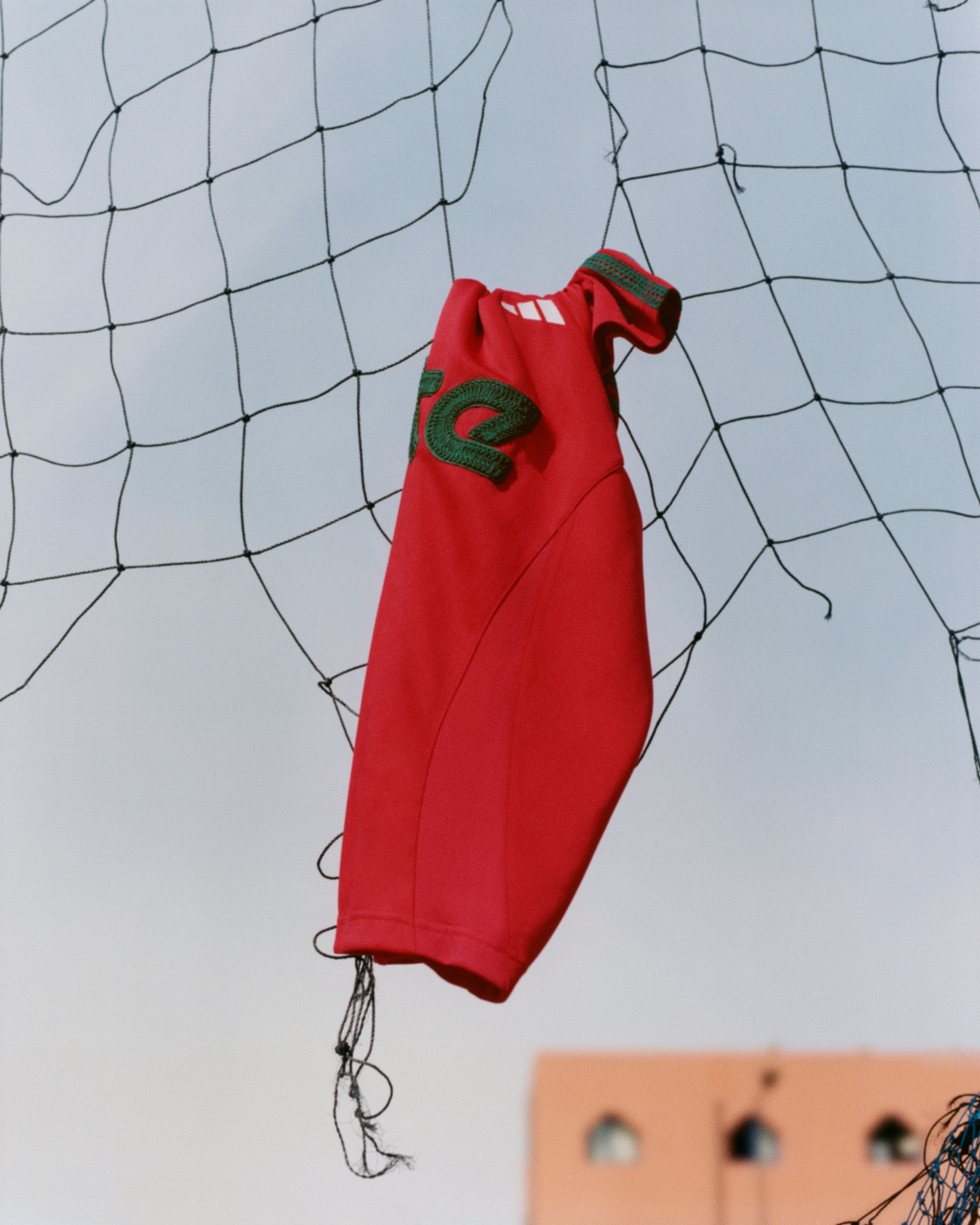The collection pays homage to the role football plays in Morocco and across the African diaspora, where the game functions as a unifying force that transcends borders, backgrounds, and identities. Seasonal colorways of red, green, white, and black reference North African flag colors, while artisanal embroidery and intricate lace trims bring a sense of craft and cultural depth to familiar sportswear silhouettes.