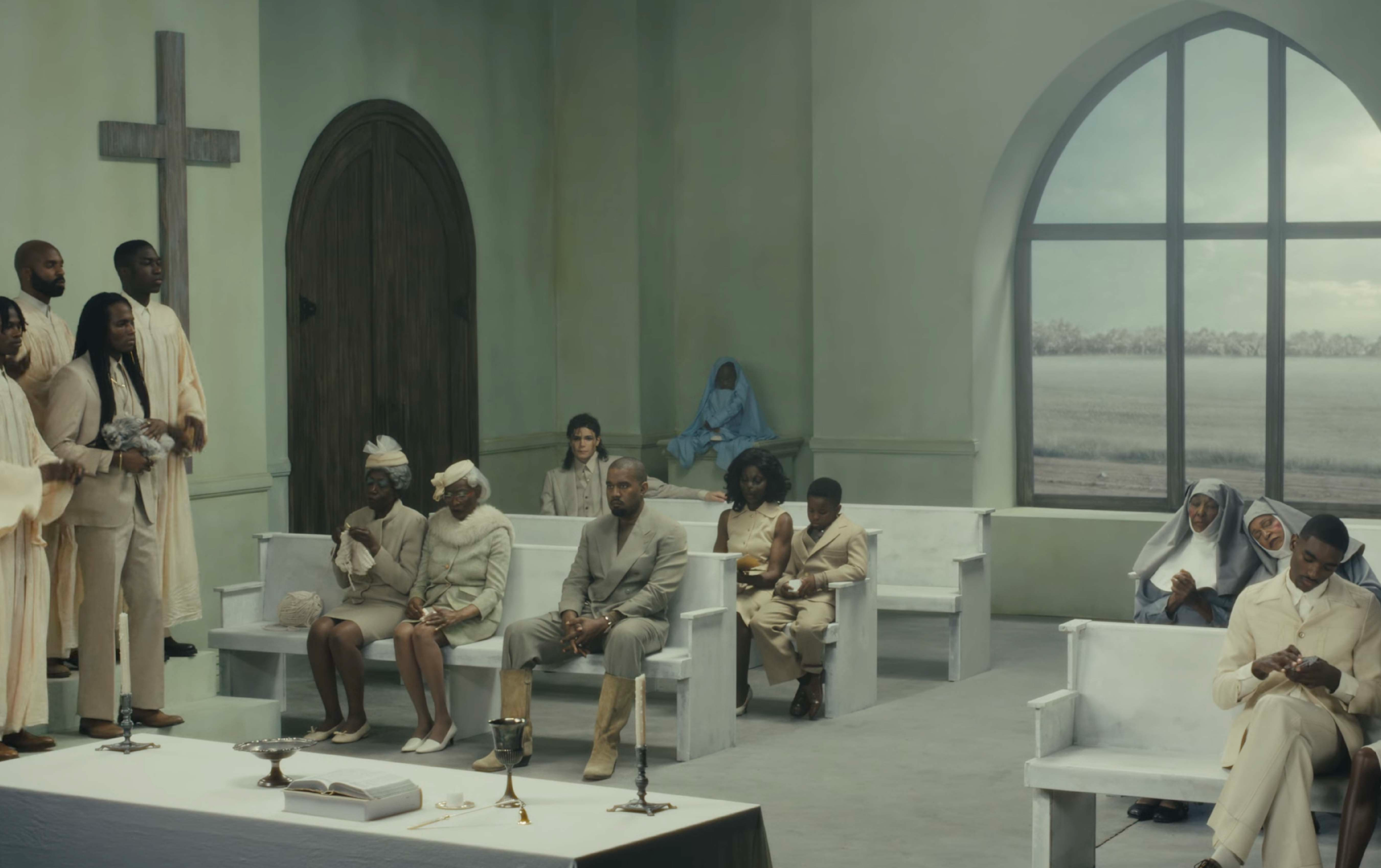 Censori’s direction blends performance art, architectural minimalism, and cinematic abstraction to construct an immersive psychological landscape. Characters move with precise, ceremonial choreography, navigating a space that balances stillness with moments of dramatic chaos. This interplay of calm and intensity amplifies the emotional resonance, drawing viewers into a contemplative exploration of belief, spectacle, and transformation.